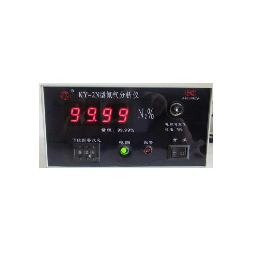 KY-2N氮气分析仪是通过采用测量氧浓度的方法,来倒算出氮气的浓度.方法是氧电极将气体中的氧浓度转换成电信号,经减法器计算,直接显示被测气体中的氮气浓度。本仪器采用控器定标79.0方法,操作方便,并设量程自动转换电路,当氮气浓度高与95.0,这时仪器量程自动转换,读数为95.00,仪器测量范围为99.99本仪器还设有下限可调设定电路,设定范围为91.0~99.9,当氮气浓度低于下限设定值时,报警指示灯亮,本机输出220V5A触点信号,并带有4~20mA信号输出(含氧量为0~1%)可与记录仪连接。